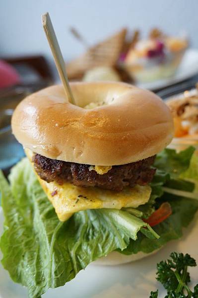 店家選用貝果來做為漢堡本體,蠻特別的作法