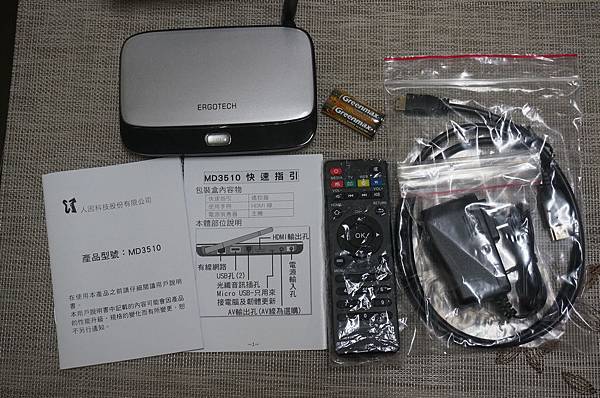 配件們 有簡易說明書 電源線 HDMI線以及遙控器(附電池)